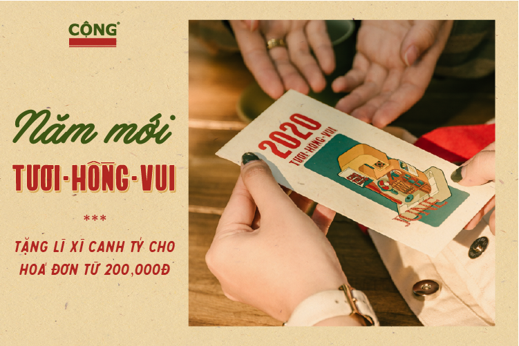 Thay lời chúc năm mới đủ đầy, hạnh phúc, Cộng gửi tặng bạn bộ Lì-Xì Canh Tý với mỗi hoá đơn từ 200.000đ. Số lượng quà tặng có hạn, đang chờ đón bạn tại các cửa hàng: