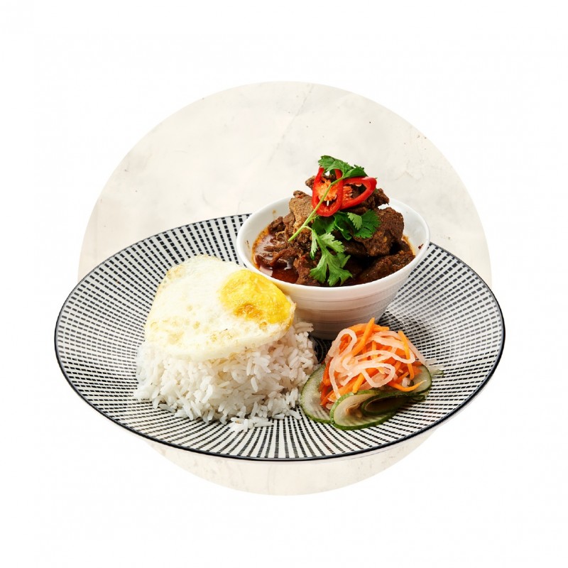 Experience the comfort of our rice dishes! Select from our delectable pulled meats - either chicken or beef-cooked in a special Kicap Manis sauce with garlic, onions, and aromatic spices.